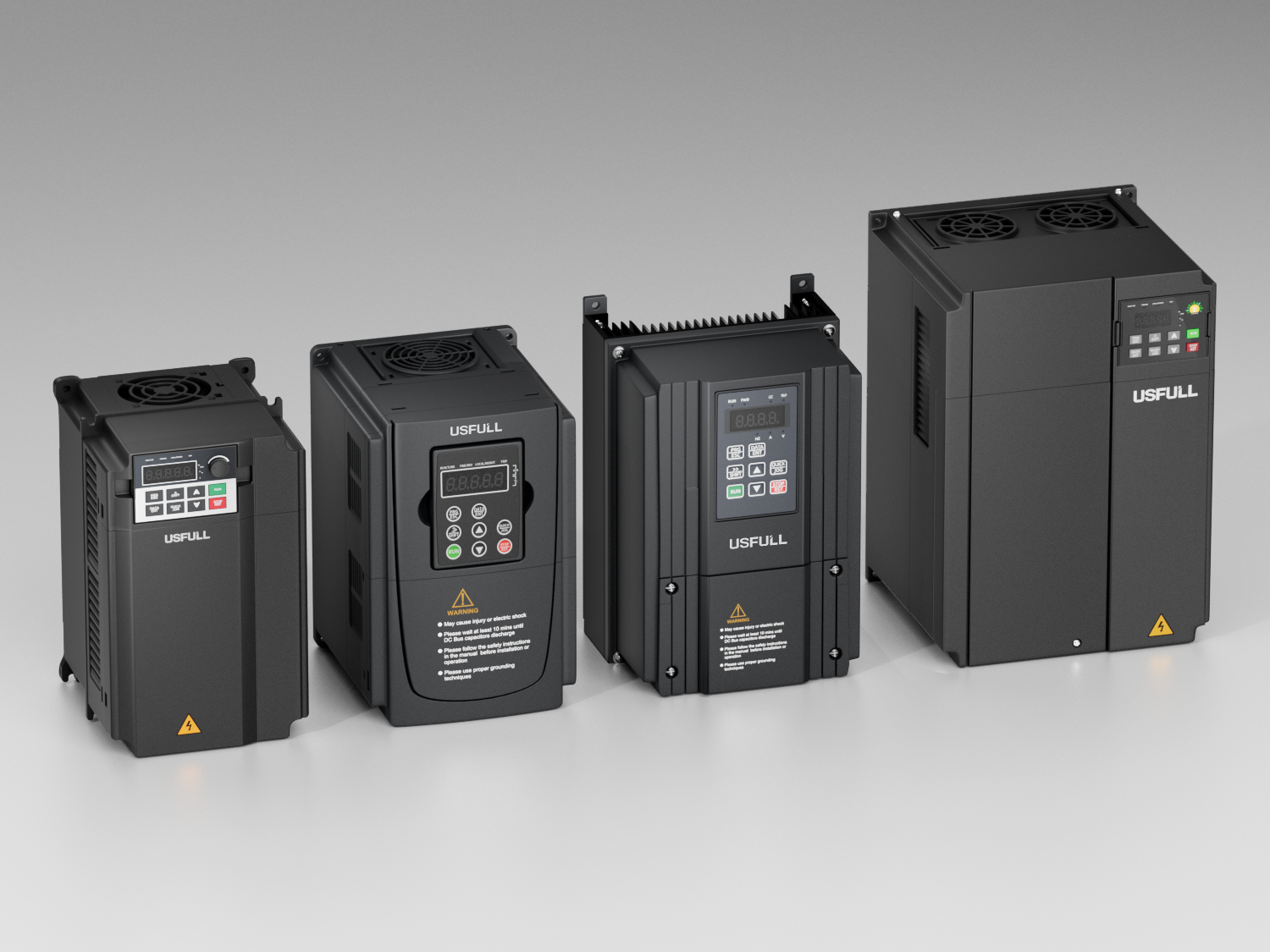USFULL生產涵蓋全功率范圍(0.75kW至630kW)的逆變器,包括通用型號以及針對風扇、水泵、機床主軸等應用的專用型號,能夠滿足精確速度調節(jié)和節(jié)能的需求。采用智能制造和全流程質量控制。